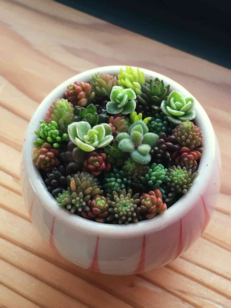 コロンとした器に色とりどりのぷっくらセダムちゃんたちすごく可愛いです~♥とても練習には見えません~🙅🌱✨