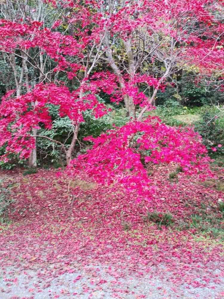 紅葉したもみじの葉っぱで地面も真っ赤に…