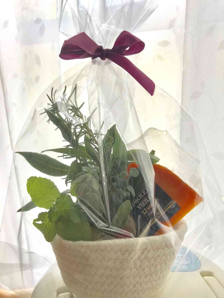手土産は、塩シフォンとミモレットのキッチンハーブ添え。