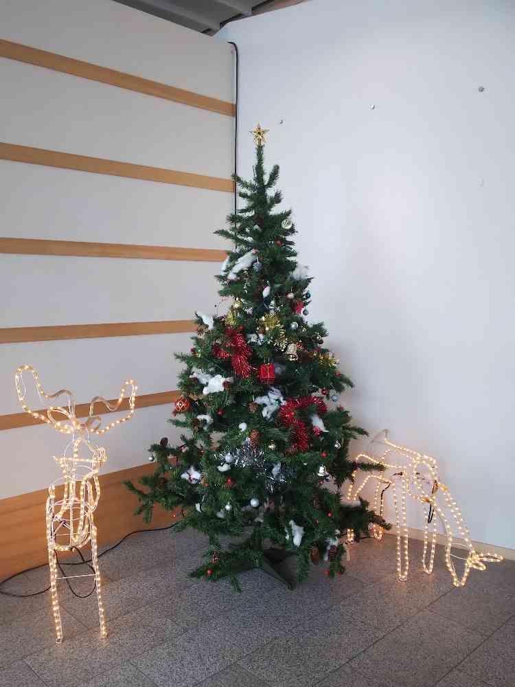 母の入院先の入り口にあったクリスマスツリー✨🎄✨右側のトナカイは首が動いてました🎄🎅🎁✨