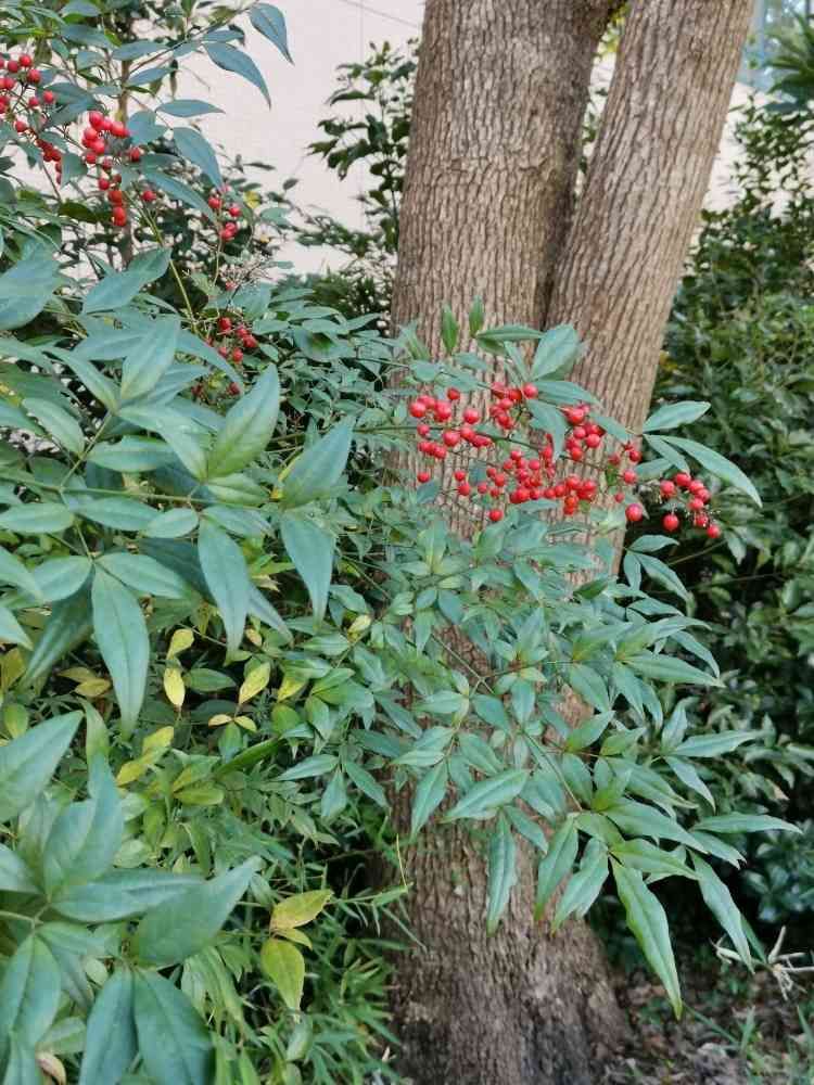 笹に隠れていた南天、笹が刈り込まれて姿を現しました😃🎵