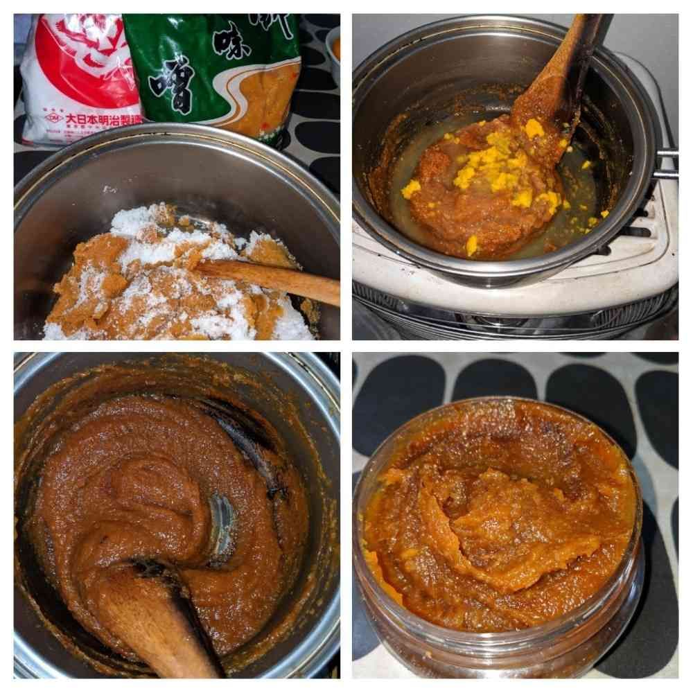 1⃣味噌と砂糖は同量だよ〜。温めながら練り練りね~リ。魔女が練るこんなお菓子あったけ?