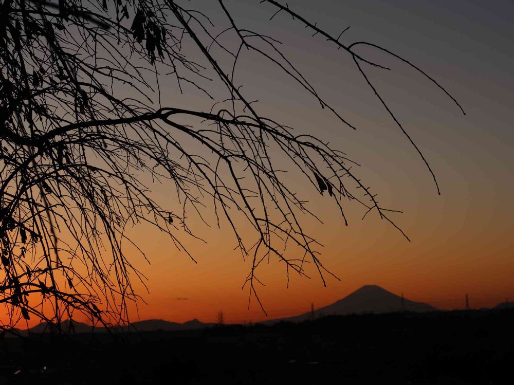 綺麗な夕焼けですね向こうに見える山は 富士山?⁉️
