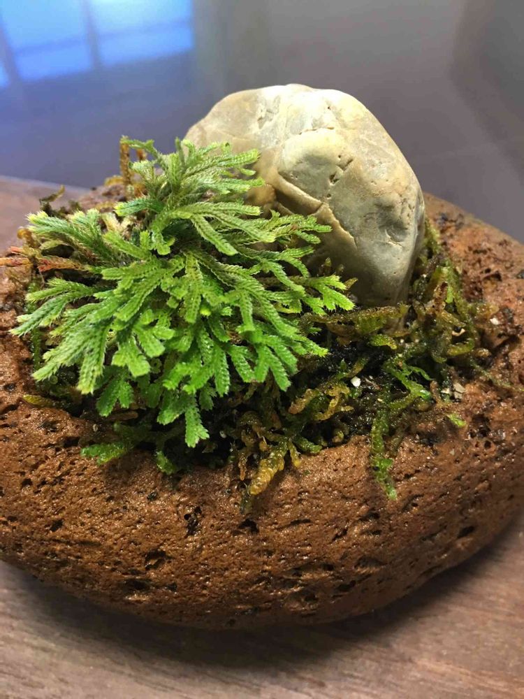 早速岩ヒバちゃんを庭の石ころと共に植えて見ましたよ🎶