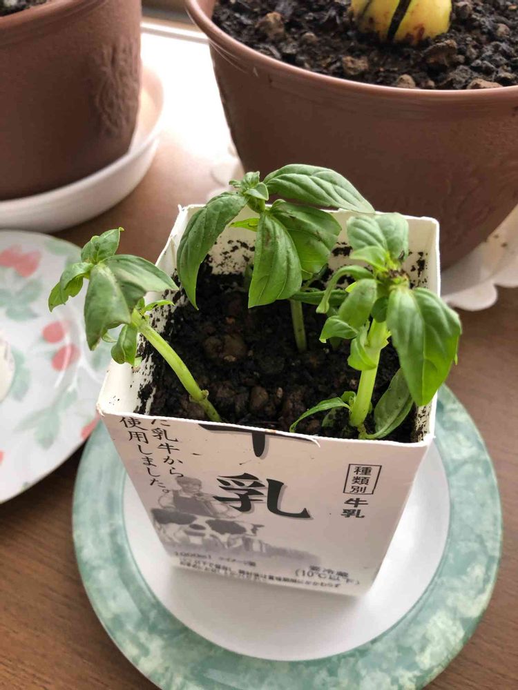 up画像を見て、牛乳=カルシウム の箱に、よわったバジルを挿してみた……という発想が、健気な気がして、コメントしにまいりました╮(。→‿Ő。)