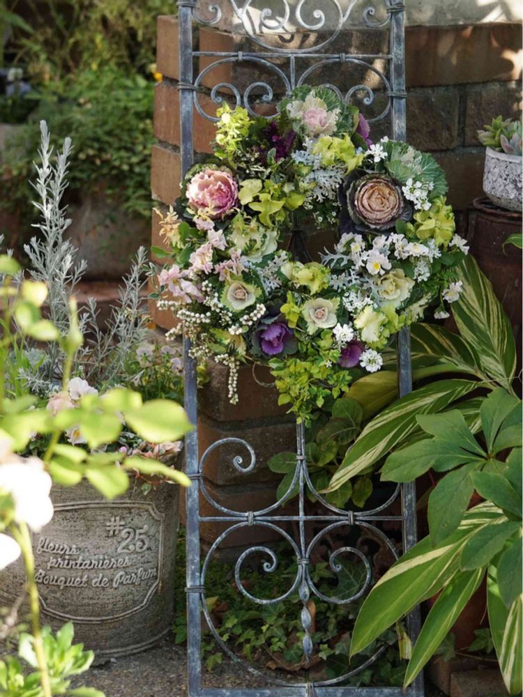 葉牡丹やビオラ、葉物をたくさん使ったギャザリングリース✨