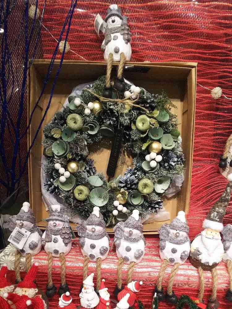 私が働いてるスーパーのお花やさんに並んでるクリスマスリースとスノーマン達💕