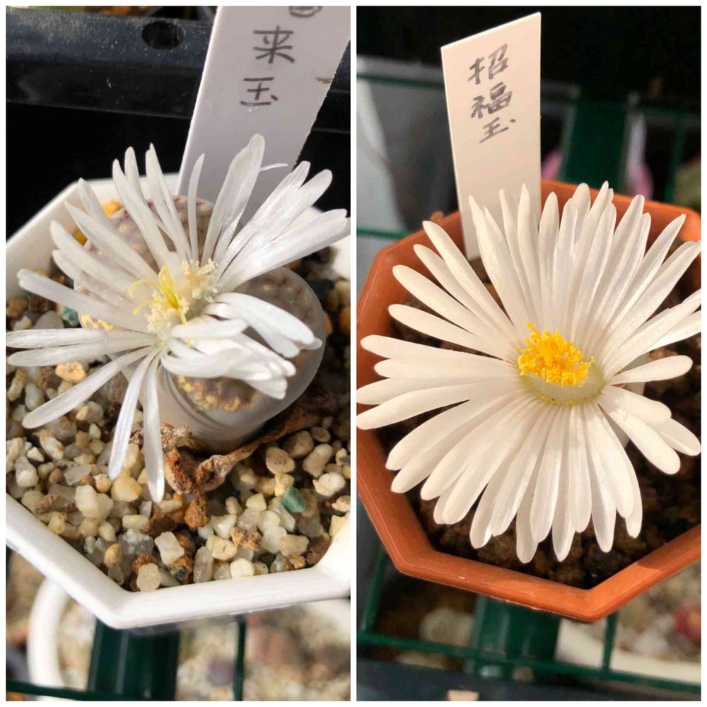 リトープスの白花部隊も開花!花びらがキラキラして綺麗でした。休日の昼間しか拝めるチャンスがないのが残念。