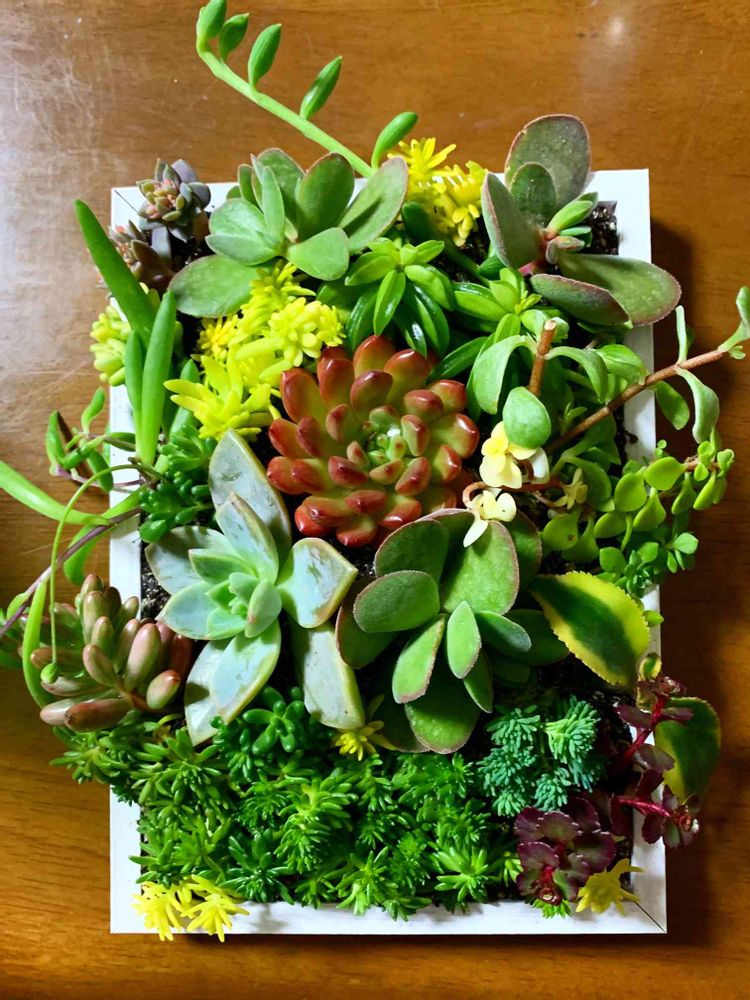 写真立てにまた寄せ植えてみました