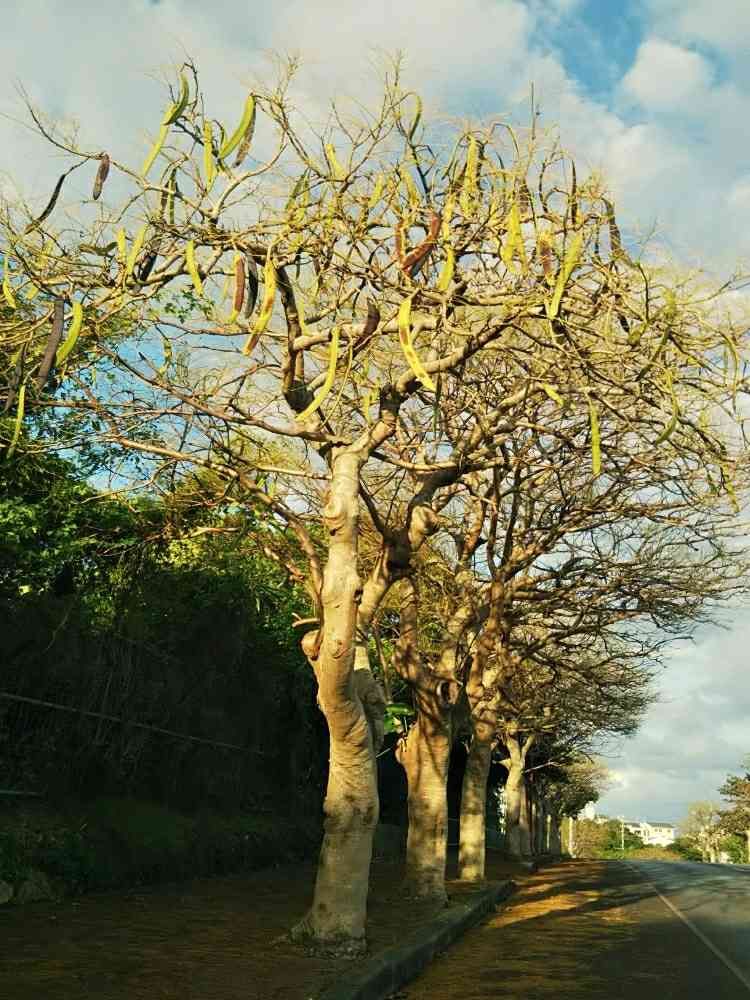 普通、実がつくと、華やかになるものですが、鳳凰木は寂しい。🌺😃華やかな花と、さやの実の「ギャップ感」カナ?