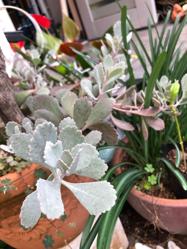カランコエ・プミラ (白銀の舞)ずっと庭の鉢植えで放置ですが、増えもせず、現状維持のまま何年も元気です😊 ギリギリ軒下なのが冬越し出来てるのかな〜