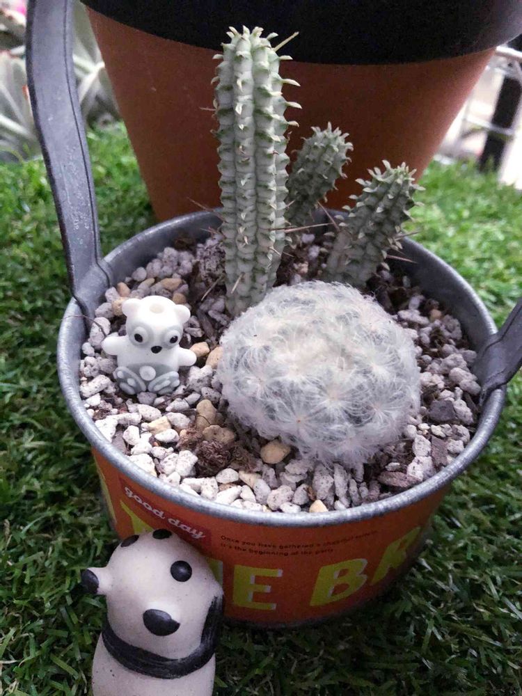 マミラリアの白星、綿毛の固まりみたいで、どこまで触って大丈夫なのか、植え替える時にドキドキしました😅