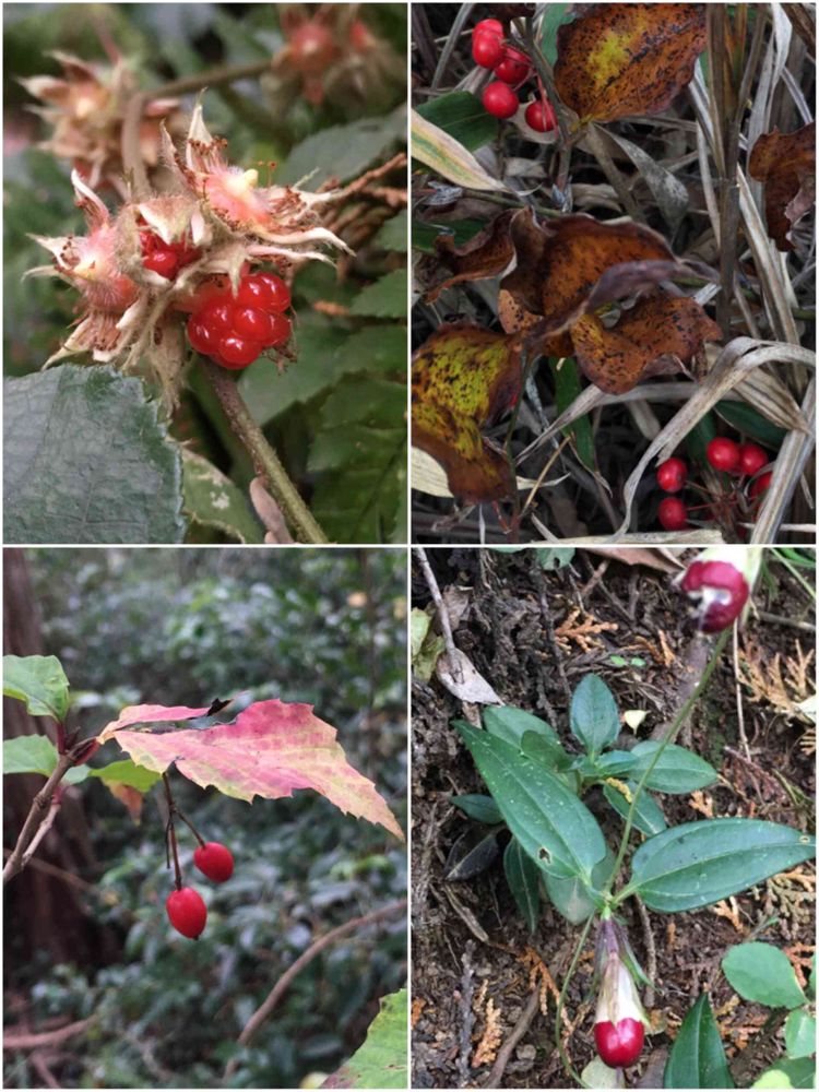 フユイチゴ、サルトリイバラ、ツルリンドウ、オトコヨウゾメ