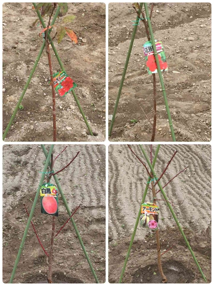畑にさくらんぼ🍒2品種とアーモンドと桃の🍑を植えました。