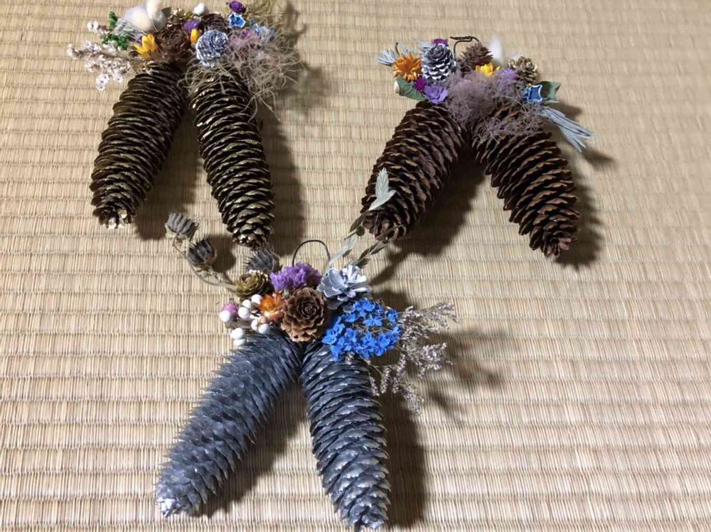 私の母は介護福祉士をしながら、趣味でドライフラワーを作りリースなど作成しています。花を植え育てたり、自然な物を自然のままに色付けは殆どせず、自然なドライで作っています。自己流ですが、ドライフラワーの素敵さを伝えていきたいとコツコツ作成しています◡̈