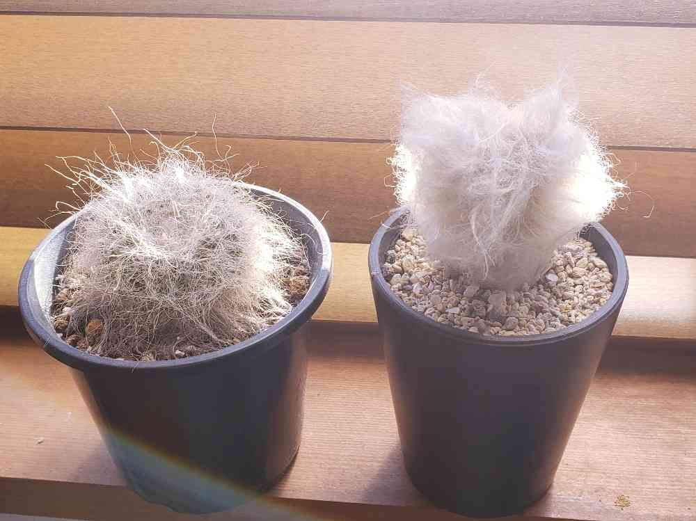 右:農家さんで、「根がでてないから多分ダメだけど、それでも良ければあげる」と言われて数ヶ月前、お迎えした白楽翁…