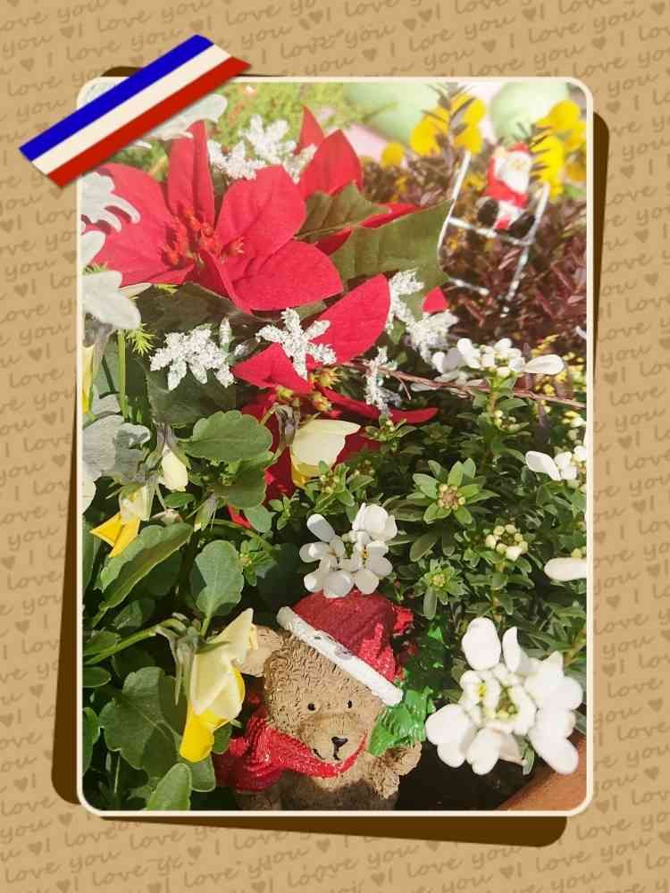 この間の寄植えを更にXmasバージョンに(*´艸`*)