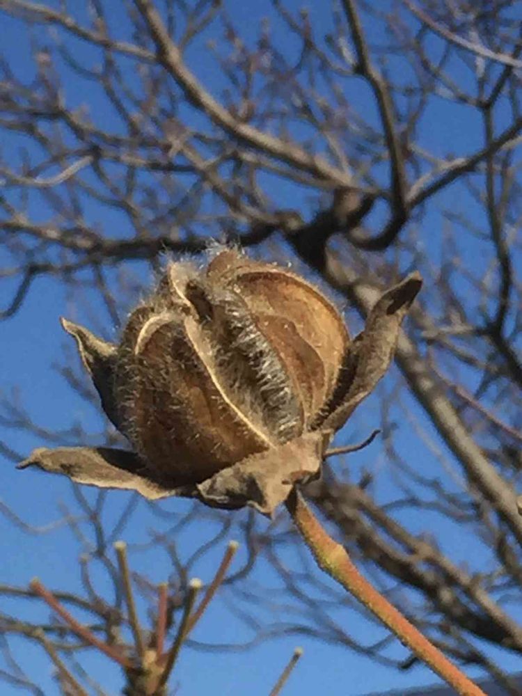 酔芙蓉に実が付いて中からタネが覗いてます😀
