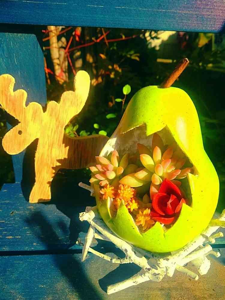 この洋梨のかまくらも、多肉さんの色との配色が、とっても可愛いですね❣️