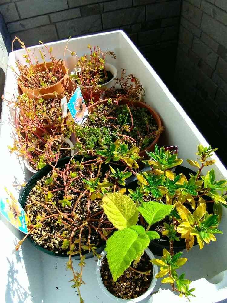 ハウスにいたポーチュラカたちを室内に移動しました。あまりコンパクトな状態じゃないけど、今切り戻したら回復しなさそうで💦