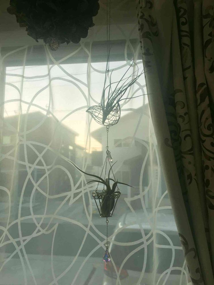 こども部屋にぴったりなエアプランツ ハンガーを見つけたので、鳥とかごを繋げて、コウノトリのイメージで飾ってみました。