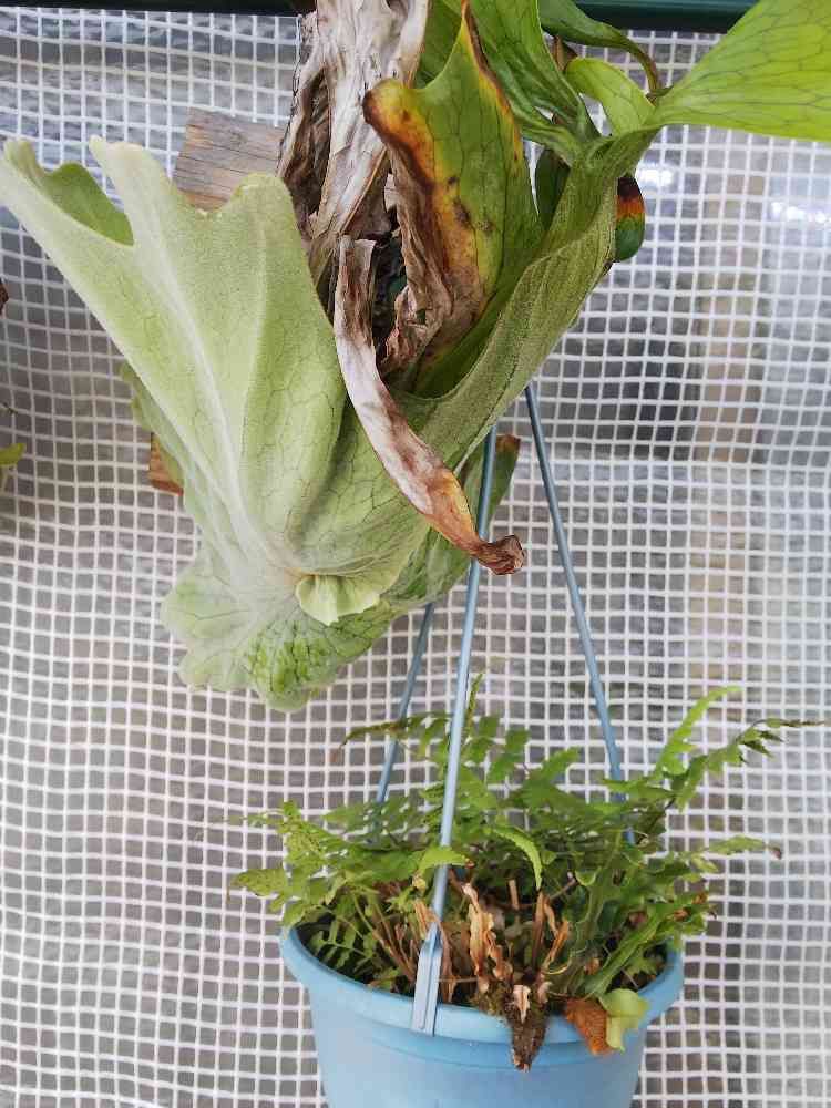 少々気難しいビカクシダ グランデさんです。簡易温室は気に入ってる様子で一緒に居るのは復活したドリナリア ボニーさんです。