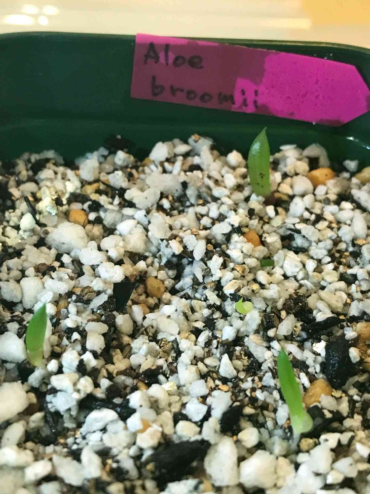 2019年12月4日 種を買ったお店からお試しで戴いたアロエ ブローミー。オトナと違い、ツヤツヤぷるぷるの芽に☺️