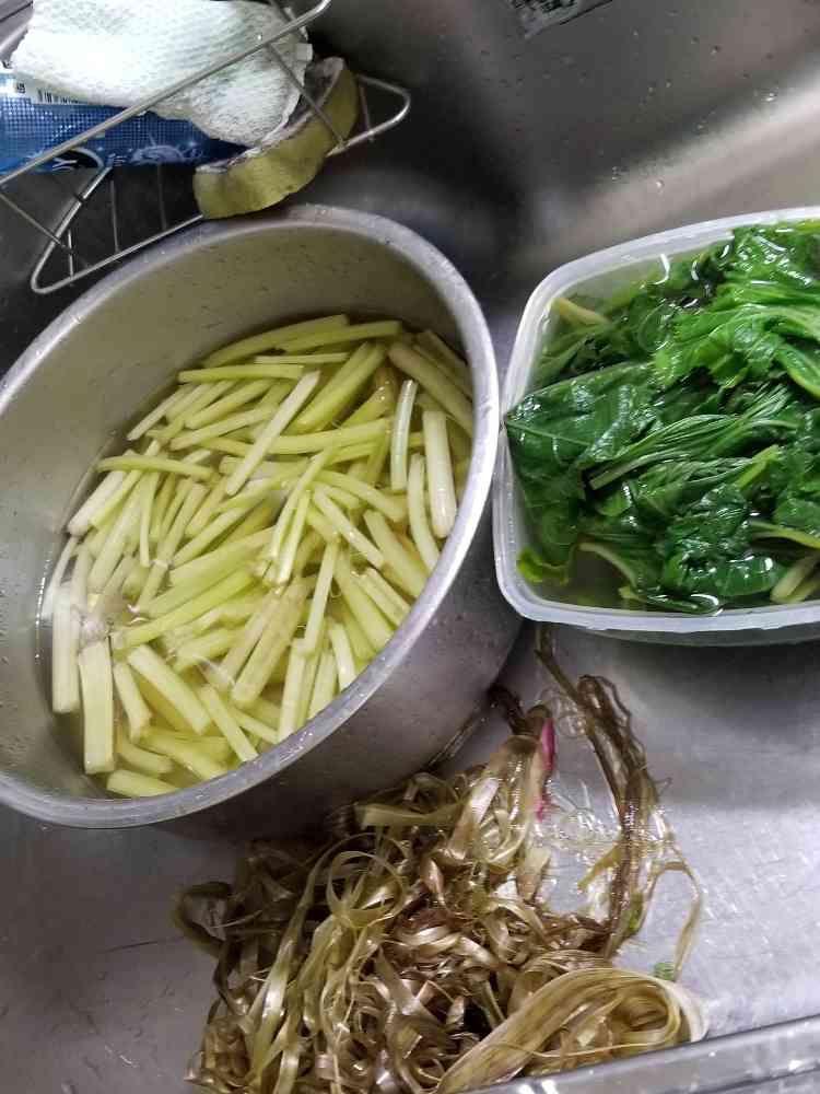 熱湯で湯がいて冷水に浸けるとあく抜きできます。綺麗な緑色の葉っぱ🍃を良く水を切って細かく刻んで少量の油で炒め味噌とオリゴ糖入れて炒めておしまい👌⤴️