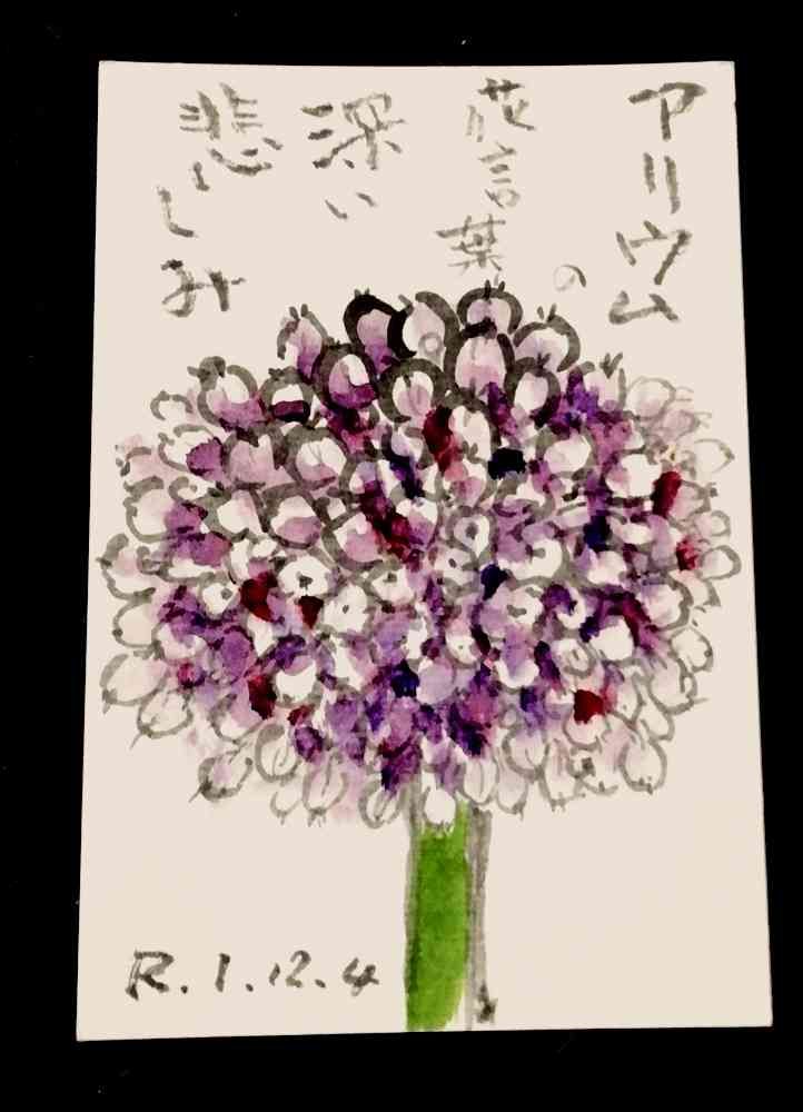くまちゃんさんのアリウム,絵手紙,深い悲しみの投稿画像