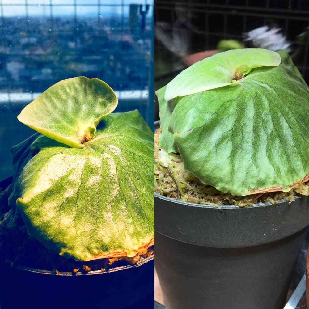 生長著しく、葉が鉢のフチに当たりキズつくので