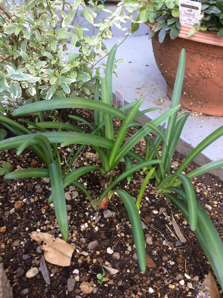 9月に友人から頂いた彼岸花白の球根を植えて葉が盛モリ出て来てる。この先葉が枯れてきたら切る。9月頃に茎がニョキニョキ伸びてきて花を咲かせる❁.*・゚☺️