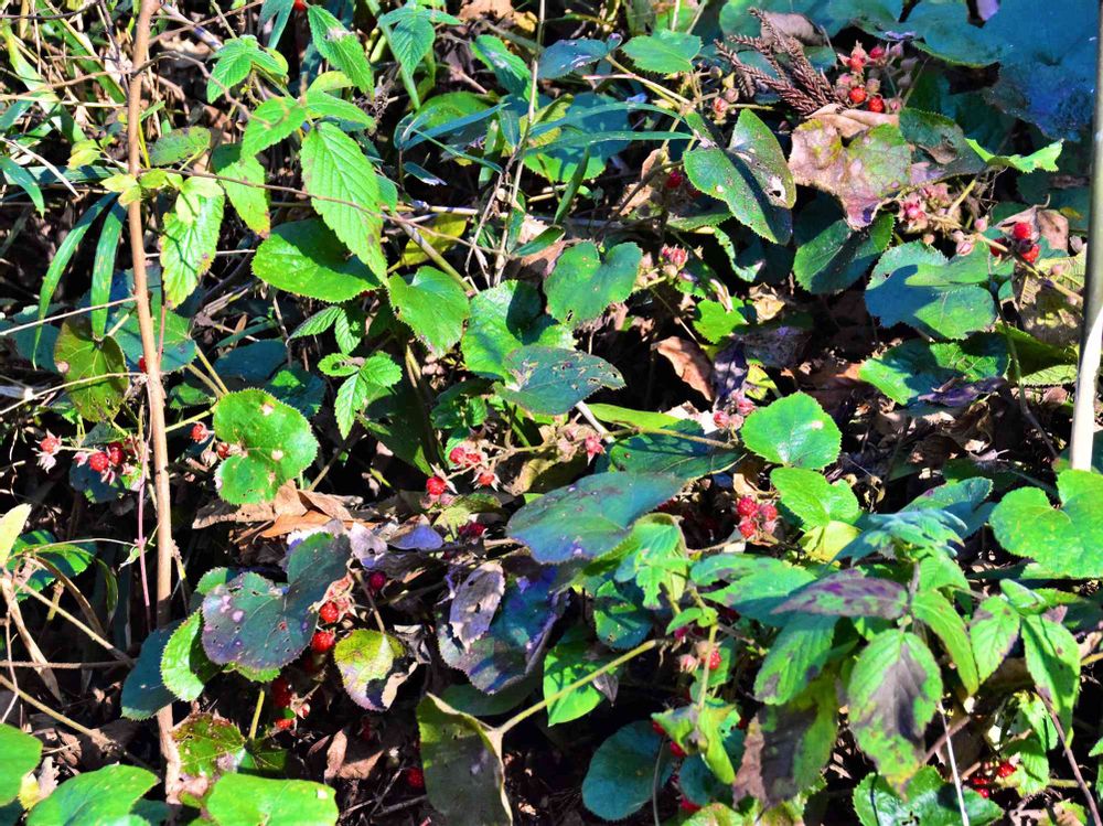 フユイチゴの群生です。今回は山全体に渡ってたくさんなっていました。モミジイチゴの木や、クサイチゴの葉もいっぱいあったので、ここはイチゴの当たり山かもしれない🍓🍓😊