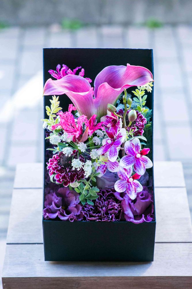 加藤洋ラン園さんのミディファレノと使ったサプライズBOXフラワー~トール型~