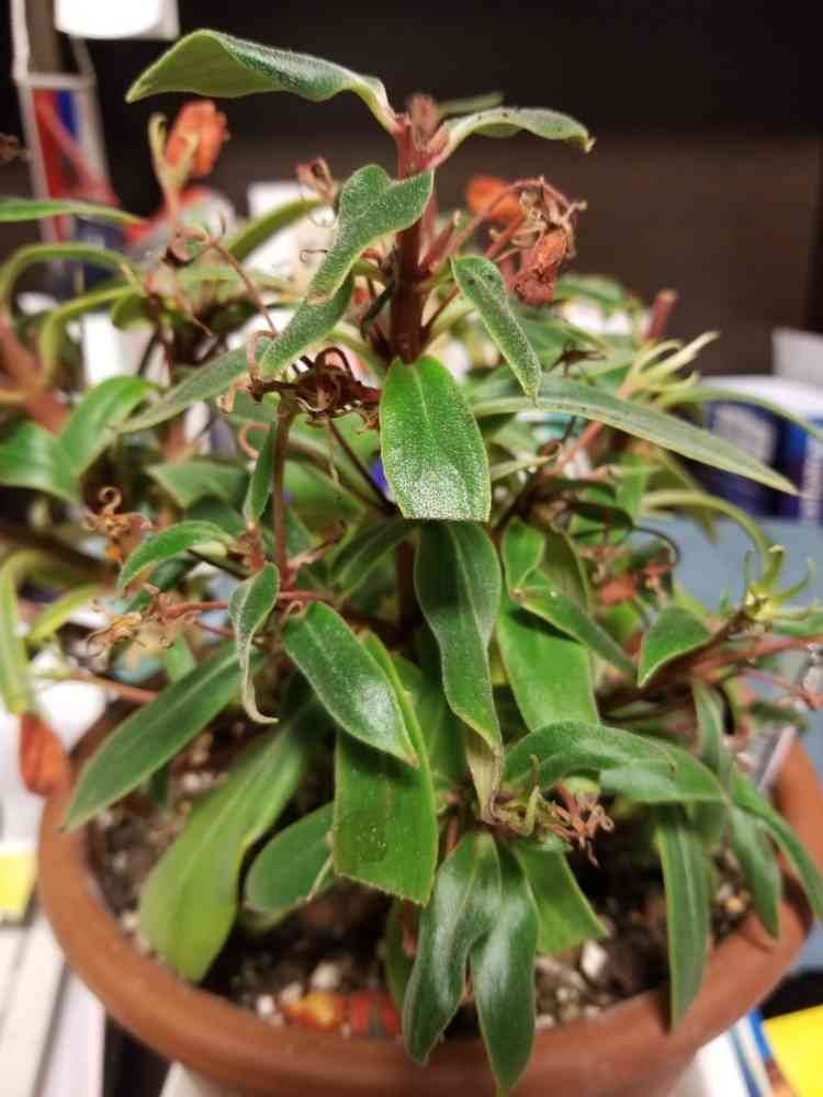 ところで投稿した写真には収めていませんが、このシーマニアの株には3 cm程のシャクトリムシが住んでいます。何故か葉ではなく、萎れた花殼ばかりを食べています。花殼を取り除く手間が省けるので放置していますが、小さなイモムシが一心にむしゃむしゃと食事をしている姿は愛らしいものです。植物が立ち直れないくらいのダメージを与える種には困りますが、育てている植物に集まってくる昆虫を眺めるのも、園芸の楽しみの一つだと思います。