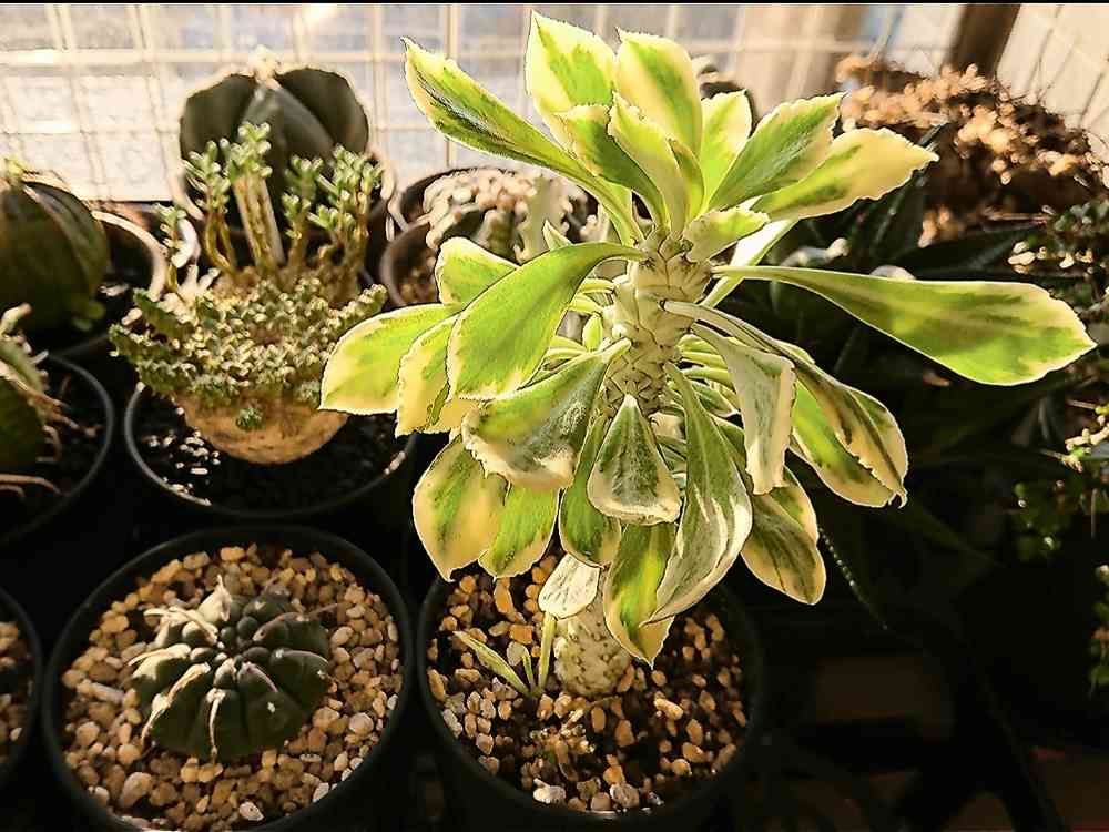 今年夏前くらいに根腐れしてしまいカット処理し 乾燥させ、7月に植え替えしたのが、しっかり根がはったみたいで 寒いのに葉が沢山茂り、わさわさしております。…😅(笑)