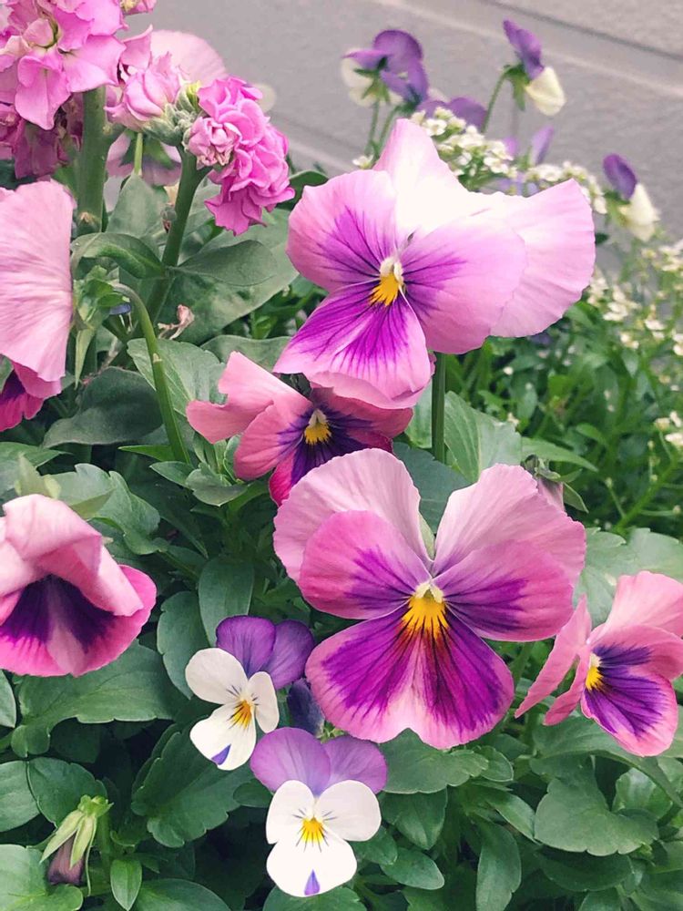 私もピンク、紫、白のカラーの組み合わせが好きで、いつもこんな感じの寄せ植えになってしまいます💗