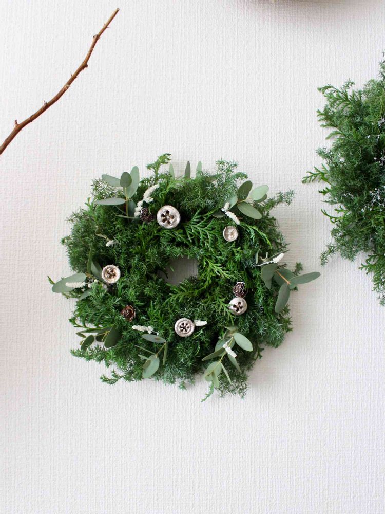 昨日作ったリースの材料が余ったので、もう一つ25cmの小さめリースも作成。お庭のユーカリも入れました。