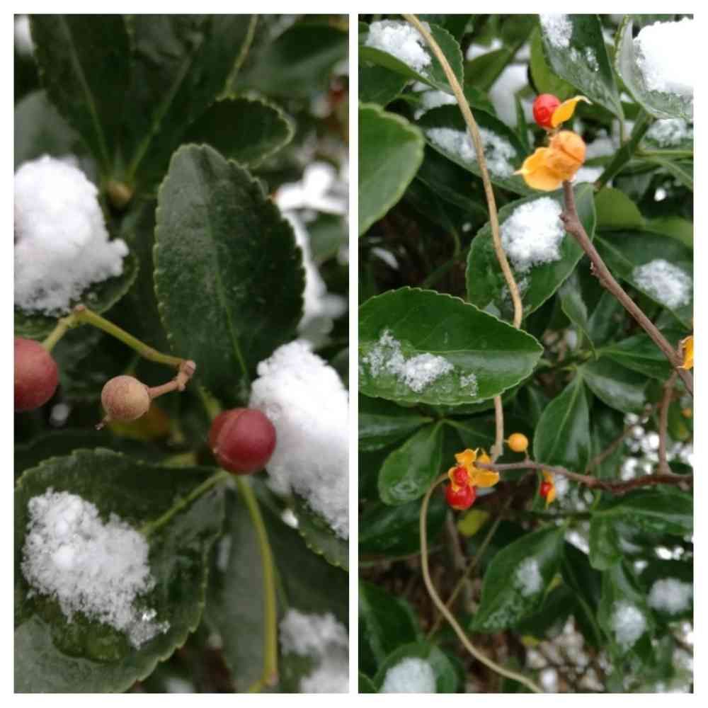 マサキとツルウメモドキの朱色の実と白い雪❄️が綺麗ですネ😊