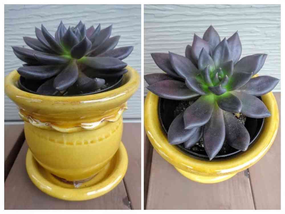 これは、2015年11月にに買ったばかりの時のエケベリア・ブラックプリンスです。お気に入りの鉢にポットのまま入れて撮った写真です。この後、室内に入れっぱなしにして、徒長させ、挙句に根腐れで瀕死の状態にさせてしまい、花茎が花にならず小苗になっていたのを挿して、なんとか復活させたのが現在咲いている子です^^;;;本体の写真を撮ったら、ちょっとみっともない姿だったので、昔の写真を引っ張り出しましたヾ(≧∇≦)ノタグにある、くろすけというのは、ブラックプリンスの別名です。うちの😸と同じ名前なので、タグに載せてます♪