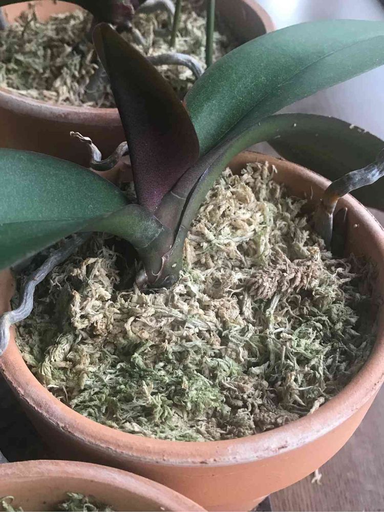 葉が成長中の小さな胡蝶蘭にも、、、、