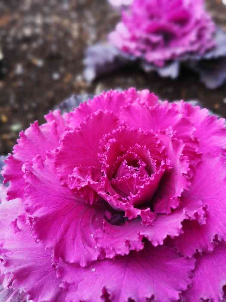 出張先で出会った葉牡丹。