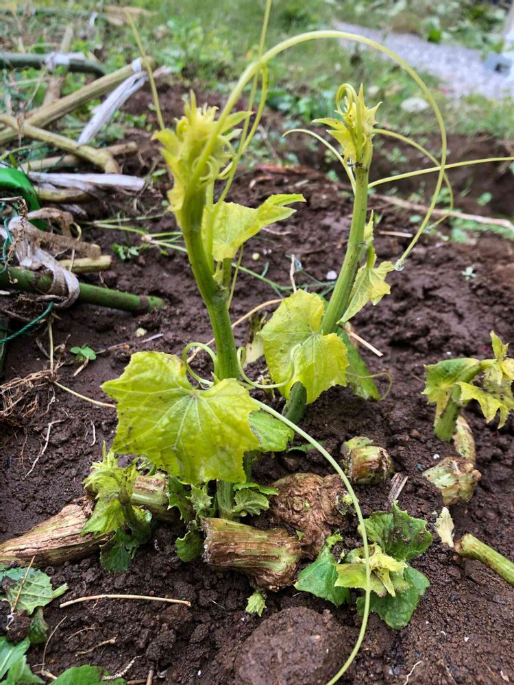 自分はハヤトウリは1年草だと思っていたので、まさか新芽が出るとは思いませんでした。とりあえずトンネルで様子見。来年のタネ植えの時にどうするか決めます。来年は目標は300。今年の1/3です。