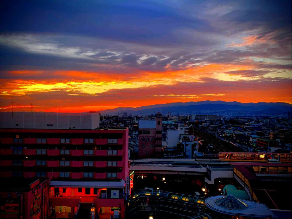 駅を降りた時から気になる空の色合い、駅前の商業施設のビルの最上階まで上がって撮りに行きました^_^♫