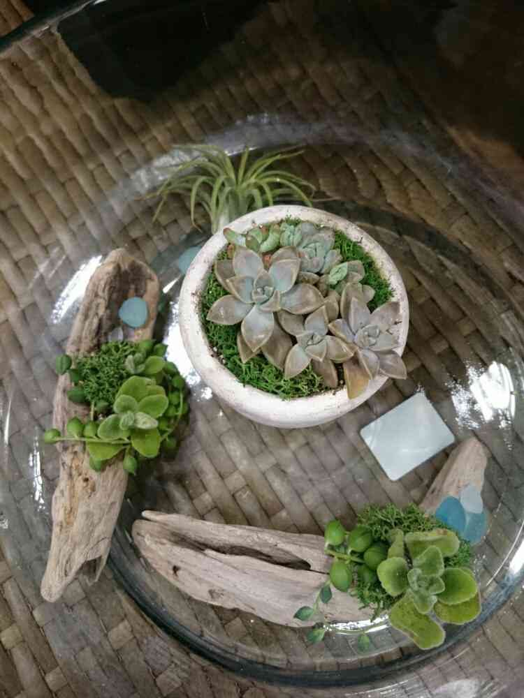 多肉ちゃんと流木さんとシーグラスのコラボが素敵♪