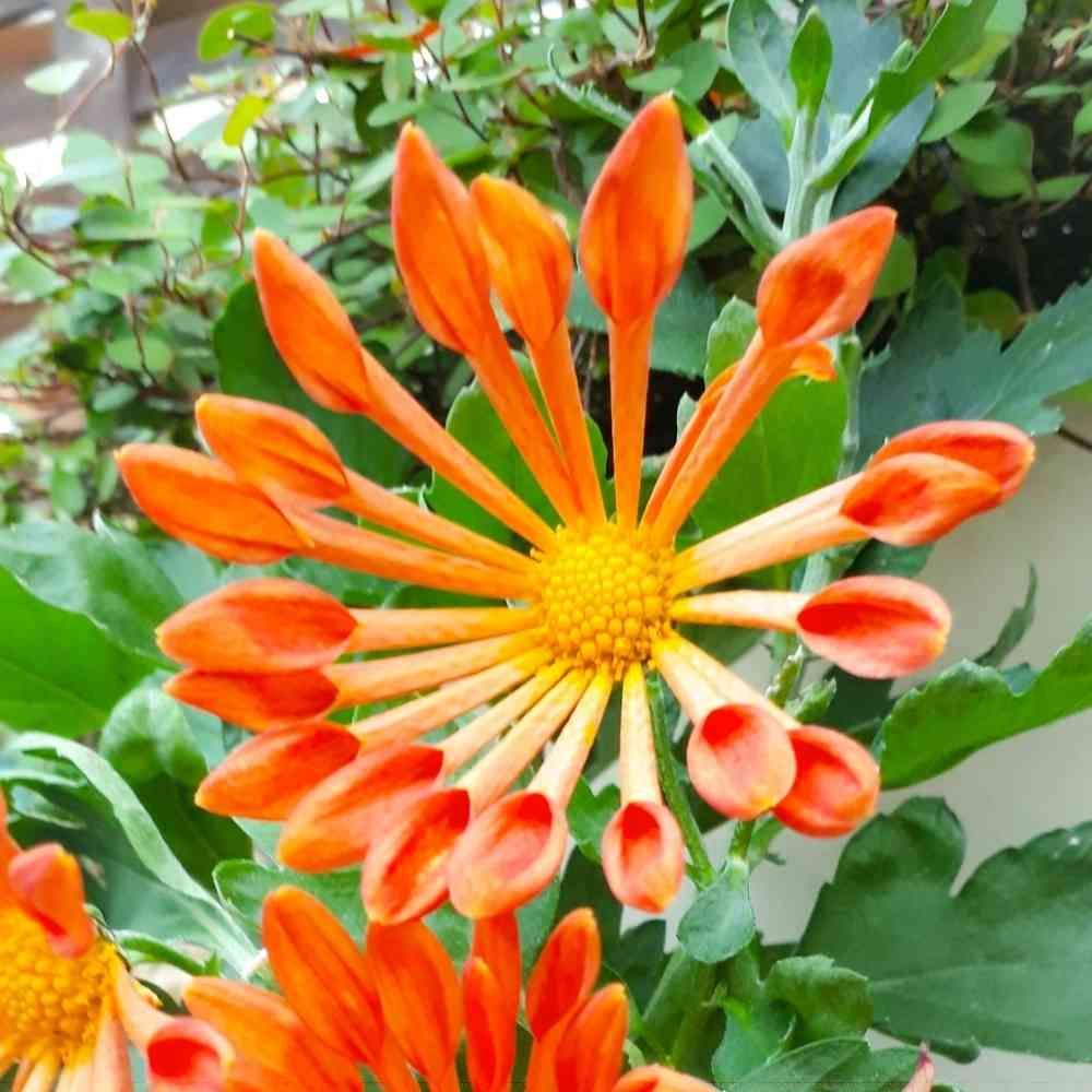 オレンジ色が濃くなった🧡風車菊ポットマム😊