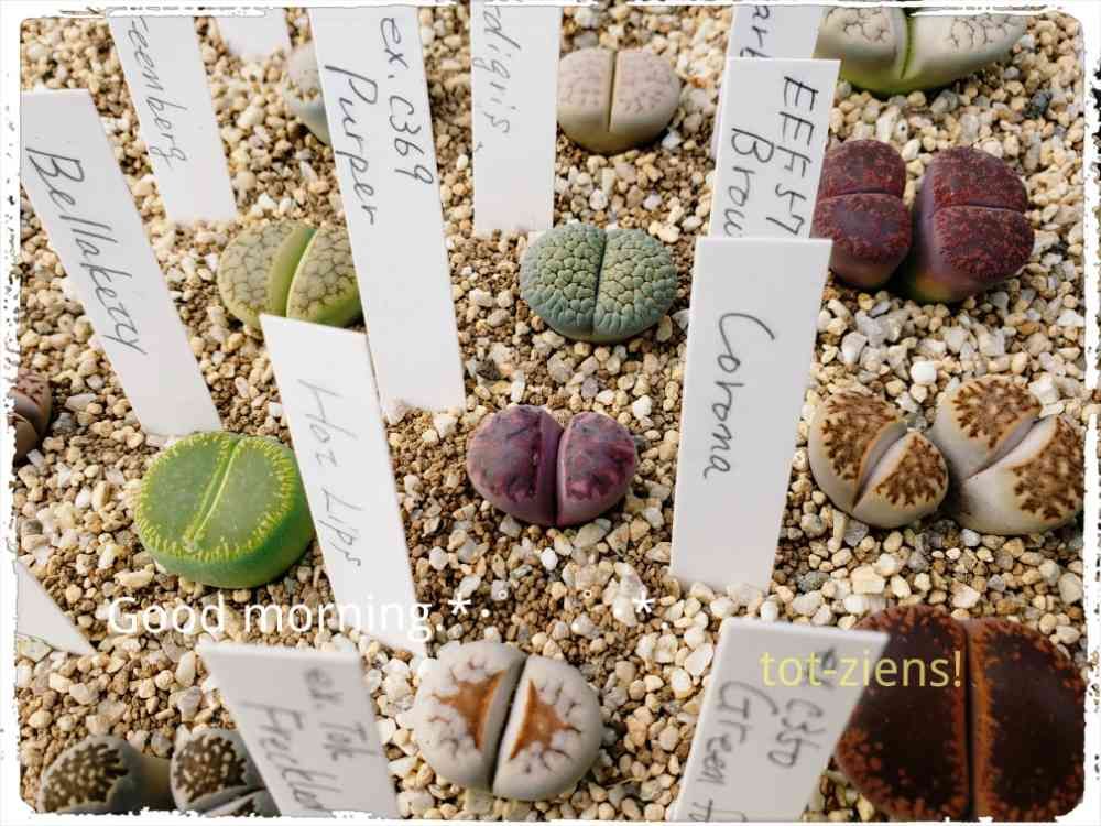 さん♪おはよう(^-^)見る人によって違うだろうど、リトープス見た人の60%程は(適当トット調べ(笑))お尻みたいって言うと思うんだけど、前に生産者の島田さんに、〝 最近初心者の方のリトープスファンが増えてきて、お尻みたいで面白いって言ってました〟って言ったら、〝お尻〜(°д°)何でそんな風に見えるの! 〟って、驚いでました(≧ω≦)