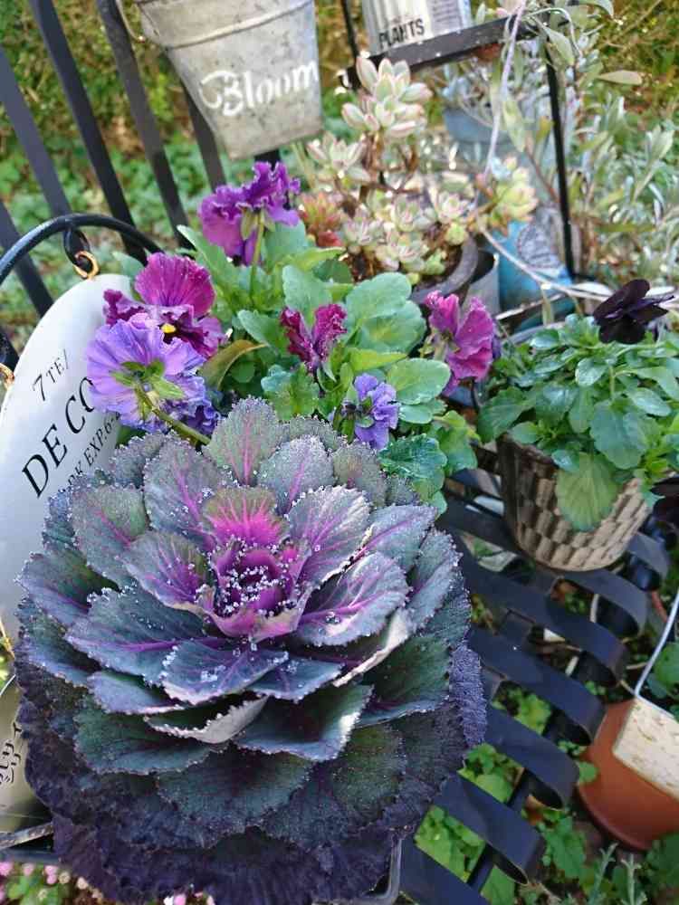 小さな庭,ビオラ・パンジー,ハボタンの寄せ植えの投稿画像