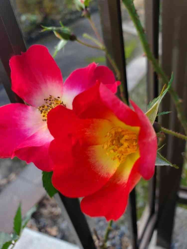 カクテルさん、寒さに強いのか葉っぱは病気で落ちてつんつるてんですけど、お花だけは咲かせてくれてます🌹