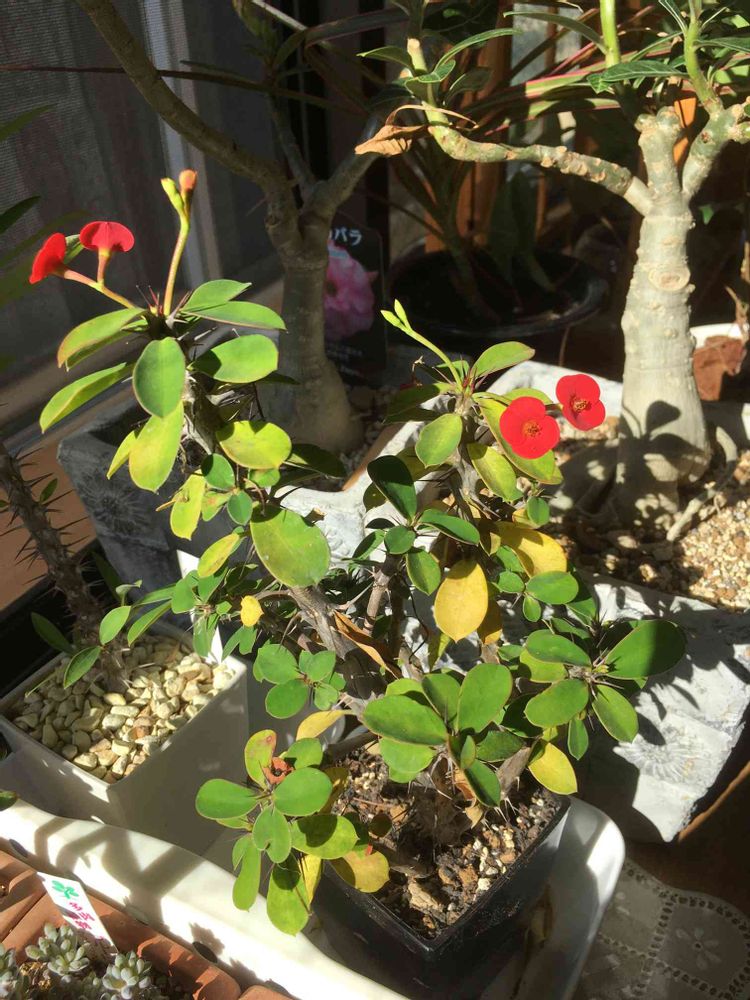 サボサボさんの窓辺,赤花キリン,多肉植物の投稿画像