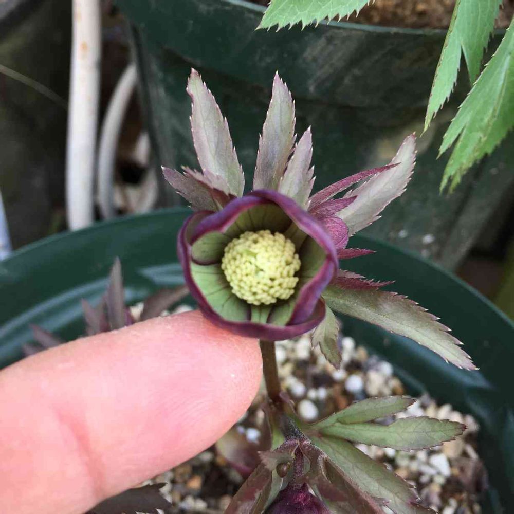 私がクリスマスローズを育てたいなと思ったきっかけは、お花屋さんの店先を飾っていた真っ白な交配種の大株だったの。その後、展示会でこのトルカータスという原種を見てハマったのよー。でも、当時は原種なんてなかなかなかったし、あっても高嶺の花だった…。そこから何年も経ってからやっと買えたお花です^ ^
